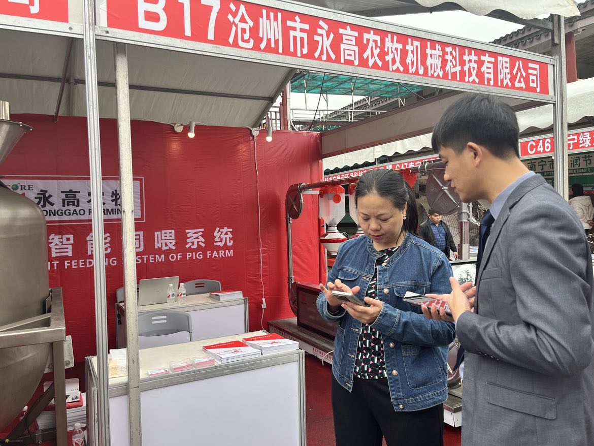 在本次年会现场,永高农牧展出了独立研发的智能饲喂设备,吸引了与会者的广泛关注。